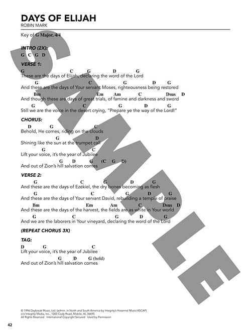Worship Band Play-Along traz transcrições e CD de play-along para tocar junto. As bandas podem usar as partituras para tocar ao vivo, e os membros podem ensaiar em casa com as faixas do CD. As oito canções em cada volume seguem um tema semelhante e os arranjos simples são perfeitos para as bandas de qualquer nível. Above All • Beautiful Savior (All My Days) • Days of Elijah • How Great Is Our God • Let My Words Be Few (I'll Stand in Awe of You) • No One like You • Wonderful Maker • Yesterday, Today and Forever.