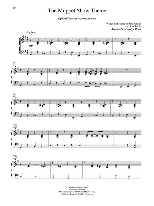 Your students will love playing these early elementary level supplements with fantastic optional teacher accompaniments arranged by Carolyn Miller. They complement and enhance the original Teaching Little Fingers to Play method, offering important guides and reminders to reinforce musical concepts. Our Teaching Little Fingers series successfully encourages advancement and also provides delightful recital material! 10 songs: The Candy Man • Do-Re-Mi • I'm Popeye the Sailor Man • It's a Small World • Linus and Lucy • The Muppet Show Theme • My Favorite Things • Sesame Street Theme • Supercalifragilisticexpialidocious • Tomorrow.