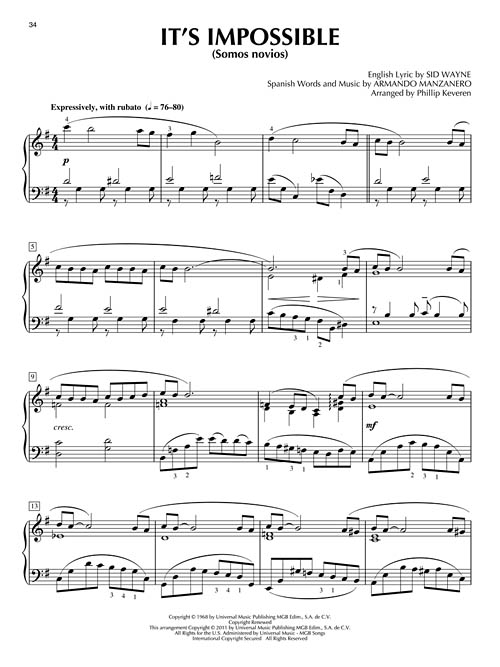 Arranjos para piano solo; incluindo: All the Things You Are • Goodbye Yellow Brick Road • It's Impossible (Somos Novios) • Let It Be Me (Je T'appartiens) • Moon River • Smile • Some Day My Prince Will Come • The Way You Look Tonight • Yesterday • e outras!!!
