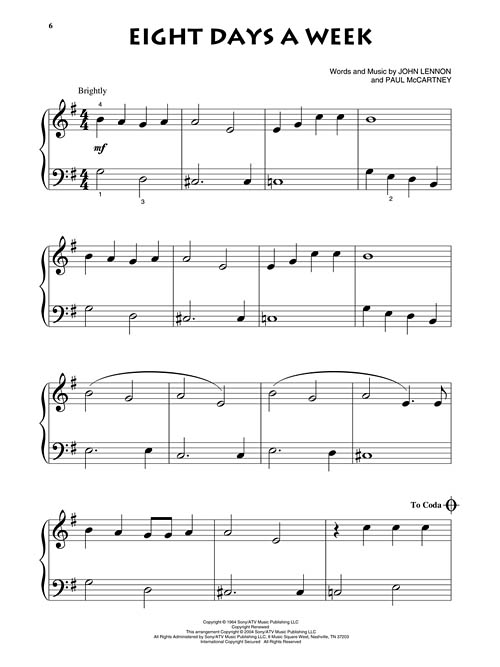 A série Beginning Piano Solo Play-Along foi projetada para pianistas prontos para tocar seu primeiro solo. Cada volume vem com áudio de arranjos orquestrados. A música neste livro combina com essas orquestrações gravadas e é cuidadosamente organizada para pianistas iniciantes. Existem duas faixas: uma faixa de performance completa para ouvir e praticar, além de uma faixa de acompanhamento separada que permite que você seja o solista! As faixas de áudio estão disponíveis online, juntamente com um player digital multifuncional (Playback+), que permite alterar o andamento sem alterar o tom, definir pontos específicos para tocar (loop), alterar o tom, além de balanço direita/esquerda. And I Love Her • Eight Days a Week • Good Night • Hey Jude • Let It Be • When I'm Sixty-Four • Yellow Submarine • Yesterday.