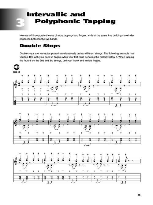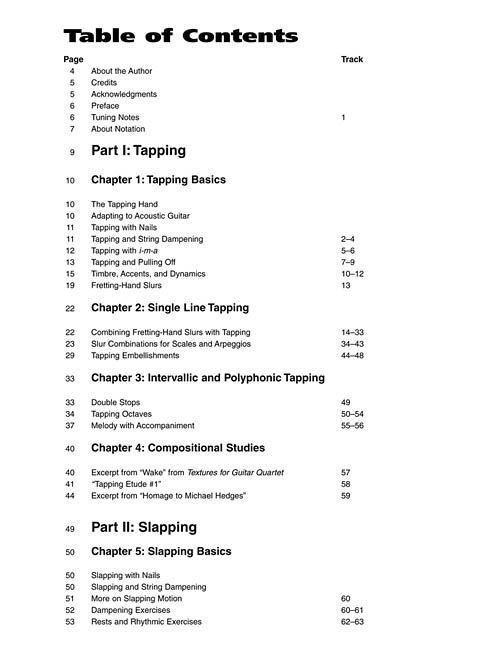 Take your acoustic playing outside of the box with extended techniques for classical and fingerstyle guitar. This innovative book with online audio features an in-depth exploration into a variety of tapping, slapping, and percussion methods. Includes loads of exercises, helpful tips and compositional studies, plus 99 demo tracks. Teaches: tapping basics, single line tapping, intervallic & polyphonic tapping, slapping basics, slapping lines, percussion basics, rudiments, additional techniques, compositional studies, standard notation and tablature, and much more!