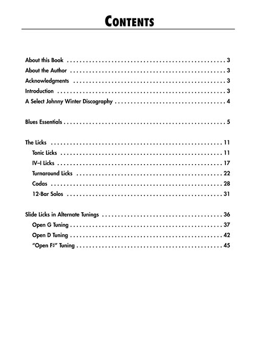 This book/CD package is an insider's guide to the guitar style of Johnny Winter. You'll learn blues licks, riffs, turnarounds, and solos from the master himself, plus slide technique, alternate tunings, and much more. The CD features performances by Johnny Winter on regular, slide, and National Steel guitar, with Paul Nelson on rhythm guitar and Dave Rubin on bass. Detailed performance notes are provided for each example.