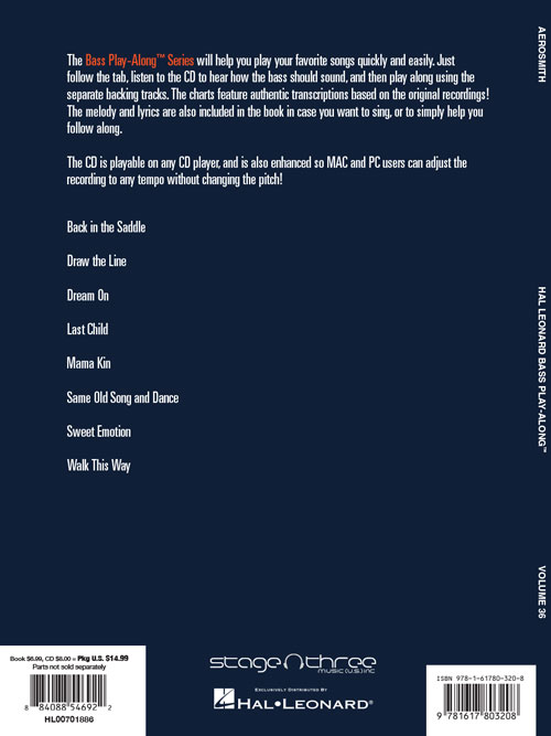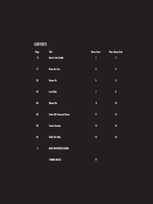 The Bass Play-Along Series vai ajudá-lo a tocar suas músicas favoritas, rápida e facilmente! Acompanhe pela tablatura e ouça o CD para entender o som do baixo e toque usando os canais separados. As melodias e as letras estão incluídas para que você possa cantá-las ou simplesmente acompanhar; incluindo: Back in the Saddle • Draw the Line • Dream On • Last Child • Mama Kin • Same Old Song and Dance • Sweet Emotion • Walk This Way.