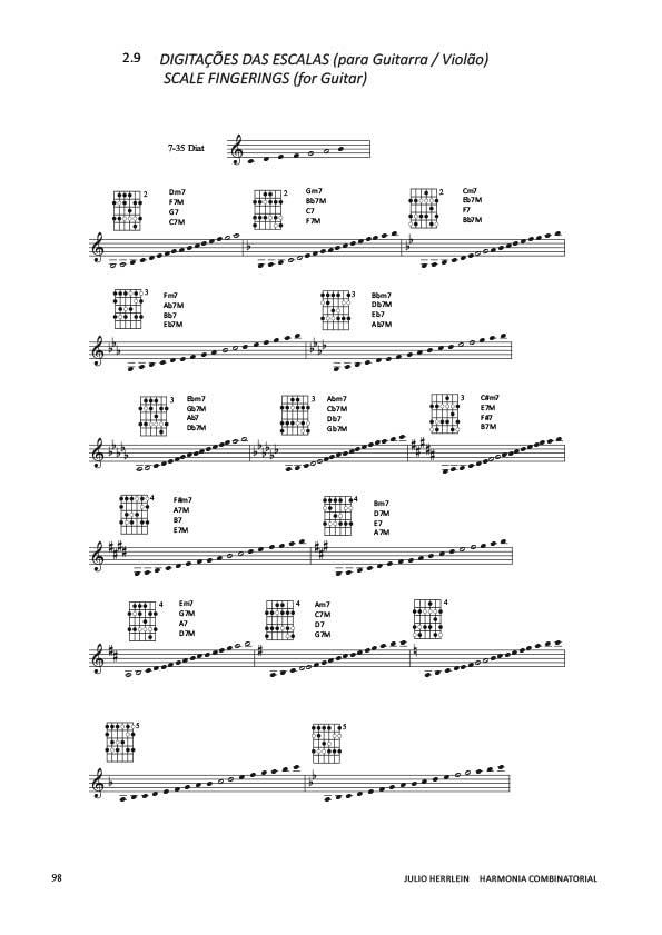 Este livro é único na medida em que aplica uma abordagem combinatória à harmonia, com materiais geralmente conhecidos do improvisador de jazz, lançando assim uma nova e excitante luz sobre um assunto familiar. É também o único livro que vi desse tipo que é tão amigável para a guitarra. Estou encontrando um vasto estoque de possibilidades aqui, e sou muito grato a Julio Herrlein por fornecê-las.