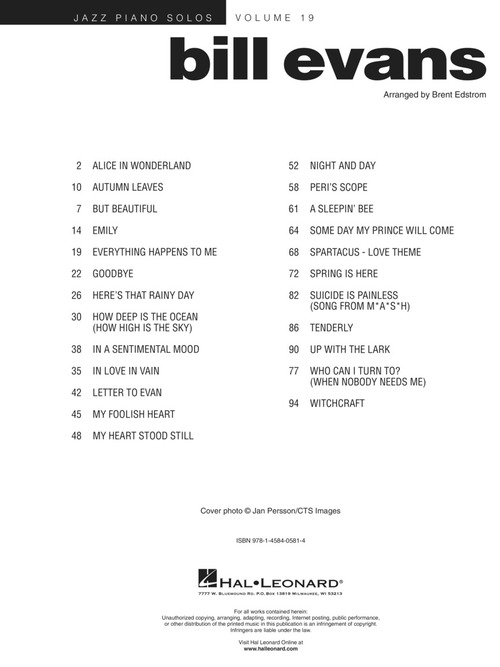 Transcrições para Piano; incluindo: Alice in Wonderland • Autumn Leaves • But Beautiful • Everything Happens to Me • Here's That Rainy Day • How Deep Is the Ocean (How High Is the Sky) • In a Sentimental Mood • My Foolish Heart • Night and Day • Some Day My Prince Will Come • Suicide Is Painless (Song from M*A*S*H) • Witchcraft • e mais!!!