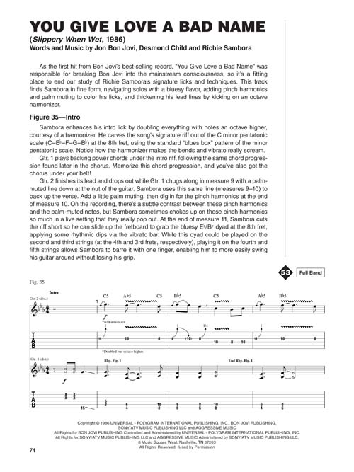 Transcrições para Guitarra na partitura e tablatura; incluindo: Bad Medicine • Born to Be My Baby • Have a Nice Day • I'll Be There for You • In and Out of Love • It's My Life • Keep the Faith • Lay Your Hands on Me • Livin' on a Prayer • Runaway • Wanted Dead or Alive • You Give Love a Bad Name.