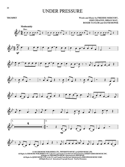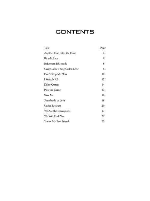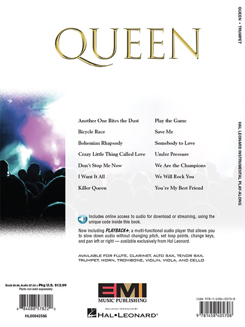 Transcrições para Trompete; incluindo: Another One Bites the Dust • Bicycle Race • Bohemian Rhapsody • Crazy Little Thing Called Love • Don't Stop Me Now • I Want It All • Killer Queen • Play the Game • Save Me • Somebody to Love • Under Pressure • We Are the Champions • We Will Rock You • You're My Best Friend.