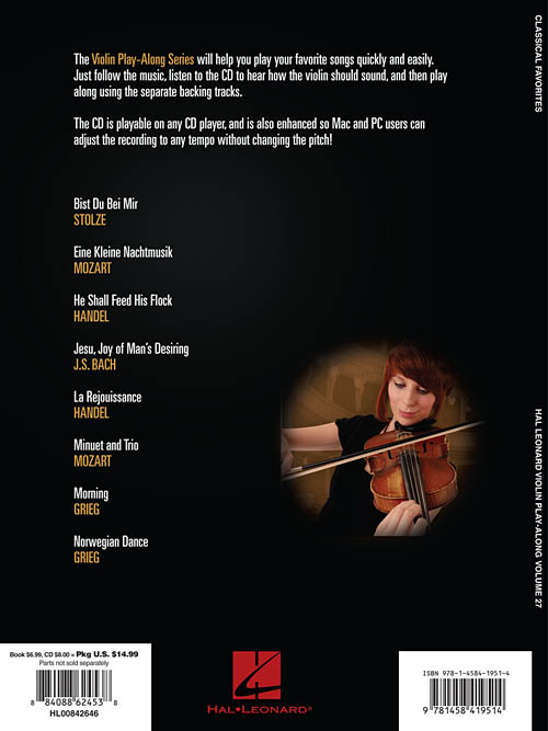 The Violin Play-Along series will help you play your favorite songs quickly and easily. Just follow the music, listen to the CD to hear how the violin should sound, and then play along using the separate backing tracks. With the melody and lyrics included in the book, you may also choose to sing along. Chord symbols are provided should you wish to elaborate on the melody. The audio CD is playable on any CD player, and also enhanced so Mac & PC users can adjust the recording to any tempo without changing pitch!