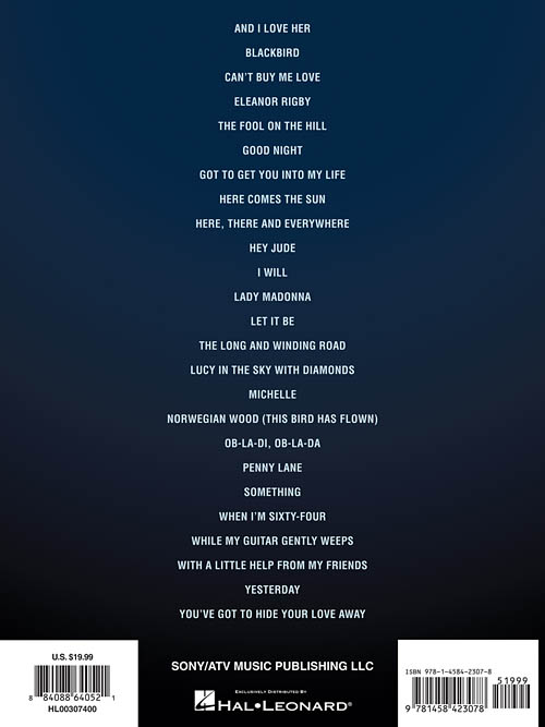 Features authentic vocal/piano transcriptions of 25 Fab Four tunes in their original keys!