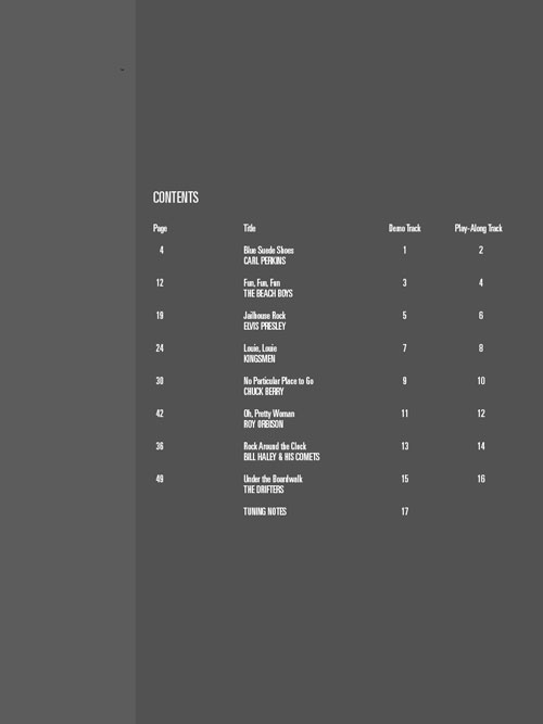 A série Bass Play-Along Series vai ajudá-lo a tocar as suas canções favoritas de forma rápida e fácil. Basta seguir a partitura ou a tablatura, ouvir o CD para sentir como soa o som do Baixo e depois tocar junto utilizando a faixa de play-back. A melodia e a letra também estão escritas caso você queira cantar. Você ainda poderá utilizar o CD no PC ou MAC para alterar o andamento da música sem alterar o pitch; incluindo: Blue Suede Shoes • Fun, Fun, Fun • Jailhouse Rock • Louie, Louie • No Particular Place to Go • Oh, Pretty Woman • Rock Around the Clock • Under the Boardwalk.