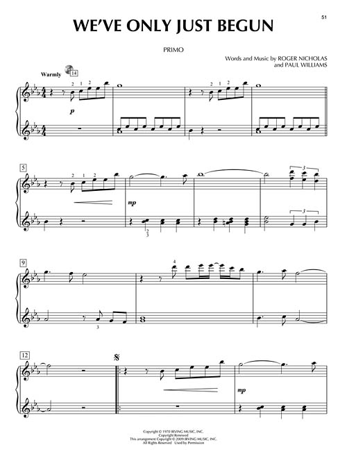 Esta série oferece a oportunidade para que você possa ensaiar ou tocar em duetos. Toque os temas com um amigo ou utilize o CD para que você mesmo possa tocar ambos os arranjos. Todos os arranjos desta série são feitos para 1 piano a 4 mãos; incluindo: Bless the Broken Road • From This Moment On • Grow Old with Me • Here and Now • I Will Be Here • Sunrise, Sunset • We've Only Just Begun • Wedding Song (There Is Love).