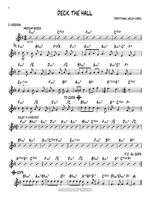 Esta série é uma excelente ferramenta de estudo para todos os músicos de Jazz. Todos os temas transcritos (melodia e acordes) para instrumentos em Bb, Eb, C e F. No áudio online cada tema tem duas gravações; uma faixa completa com a melodia e uma segunda faixa com o mesmo tema, porém sem a melodia, somente o play-back para que você possa tocar junto. Você ainda pode eliminar o Baixo ou o Piano usando o "balanço" do seu equipamento de som. "Chorus" adicionais para improvisação. The First Noel • Good King Wenceslas • Jingle Bells • O Christmas Tree • Toyland • Up on the Housetop • We Three Kings of Orient Are • We Wish You a Merry Christmas.