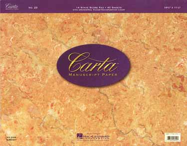 26 stave score pad, 12x18, 40 sheets, includes Orchestral Range/Transposition Chart.
