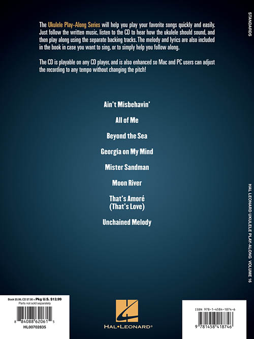 The Ukulele Play-Along series will help you play your favorite songs quickly and easily, with incredible backing tracks to help you sound like a bona fide pro! Just follow the written music, listen to the CD to hear how the ukulele should sound, and then play along with the separate backing tracks. The melody and lyrics are included in the book in case you want to sing, or to simply help you follow along. The CD is playable on any CD player, and also enhanced so Mac & PC users can adjust the recording to any tempo without changing the pitch! Each Ukulele Play-Along pack features eight quintessential songs. Includes these standards.