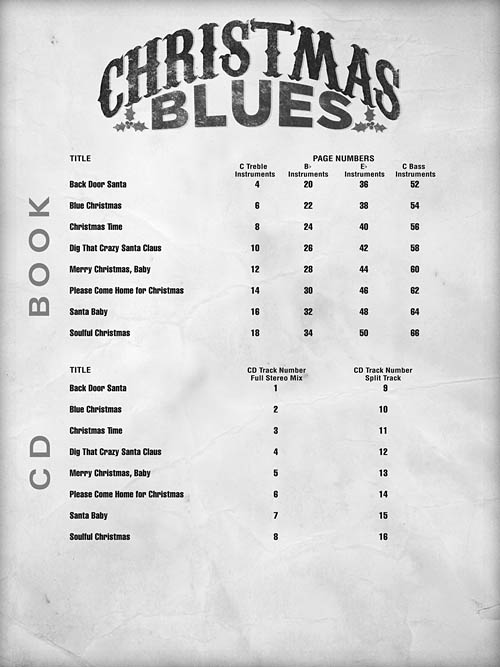 Esta série traz todos os temas transcritos para instrumentos em C, Eb, Bb e Clave de Fá. No CD cada tema tem duas gravações; uma faixa completa com a melodia e uma segunda faixa com o mesmo tema, porém sem a melodia, somente o play-back para que você possa tocar junto. O CD ainda pode ser usado em PC ou Mac com possibilidade de alterar o tempo sem alterar o tom. As gravações são de excelente qualidade, mostrando a real atmosfera blues, incluindo gaitas, guitarras e muitos elementos nos arranjos. Incluindo: Back Door Santa · Blue Christmas · Christmas Time · Dig That Crazy Santa Claus · Merry Christmas, Baby · Please Come Home for Christmas · Santa Baby · Soulful Christmas.