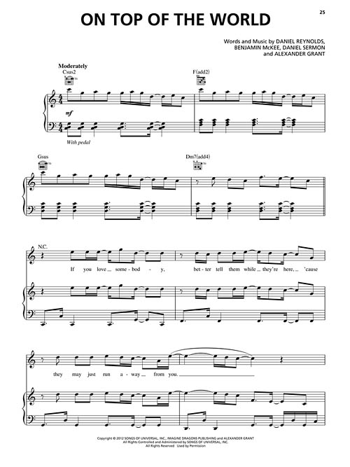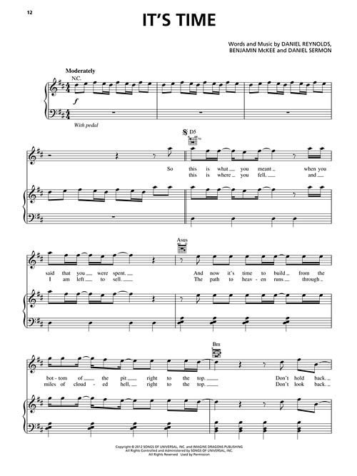 Transcrições para piano/vocal e acordes para violão; incluindo: Amsterdam • Bleeding Out • Demons • Every Night • Hear Me • It's Time • Nothing Left to Say / Rocks • On Top of the World • Radioactive • Tiptoe • Underdog.