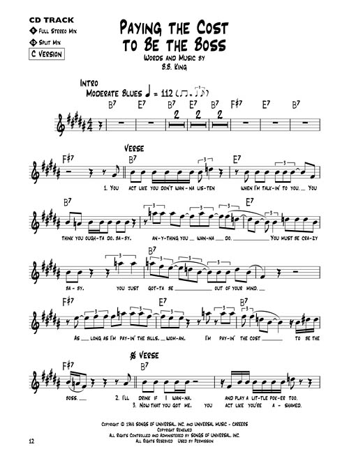 Esta série traz todos os temas transcritos para instrumentos em C, Eb, Bb e Clave de Fá. No CD cada tema tem duas gravações; uma faixa completa com a melodia e uma segunda faixa com o mesmo tema, porém sem a melodia, somente o play-back para que você possa tocar junto. O CD ainda pode ser usado em PC ou Mac com possibilidade de alterar o tempo sem alterar o tom. As gravações são de excelente qualidade, mostrando a real atmosfera blues, incluindo gaitas, guitarras e muitos elementos nos arranjos. Incluindo: Cross Road Blues (Crossroads) • Give Me Back My Wig • Got My Mo Jo Working • The House Is Rockin' • Paying the Cost to Be the Boss • Rollin' and Tumblin' • Turn On Your Love Light • You Can't Judge a Book by the Cover.