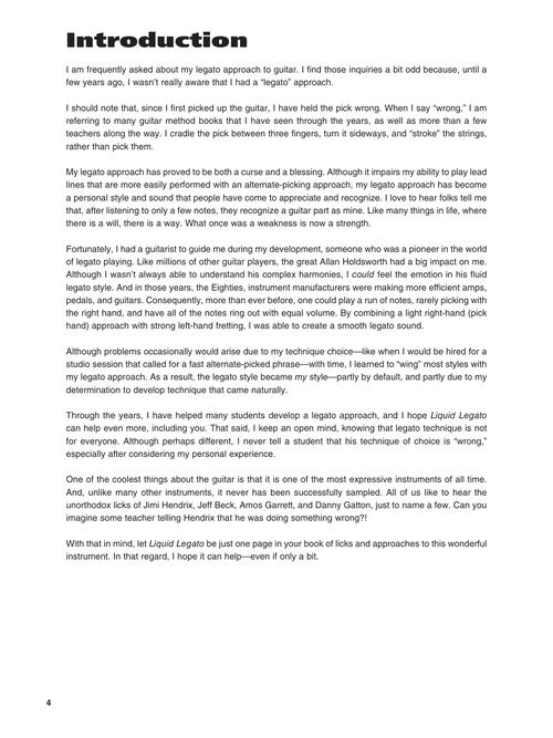 Learn to develop a smooth legato style by combining a light pick hand technique with a strong fretting hand, exemplified by Allan Holdsworth, Jimi Hendrix, Jeff Beck, Danny Gatton and other guitar masters. Audio is accessed online using the unique code inside the book and can be streamed or downloaded. The audio files include PLAYBACK+, a multi-functional audio player that allows you to slow down audio without changing pitch, set loop points, change keys, and pan left or right.