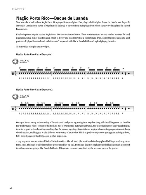 Master percussionist, bandleader, producer, and songwriter Scott Kettner is the guiding force behind Nation Beat, a band whose teeming, vibrant rhythms find common ground in the primal maracatu rhythm of Brazil's northeastern region, the Big Easy's funky, hypnotic second-line and strolling Mardi Gras Indians, and the unfettered freedom of big-city downtown jazz. After graduating from New York's New School University, Kettner moved to Brazil to learn more about maracatu. With this book, he shares an accessible and pragmatic approach to learning and understanding the instruments and basic rhythms of Maracatu de Baque Virado and how to apply these rhythms to drumset.