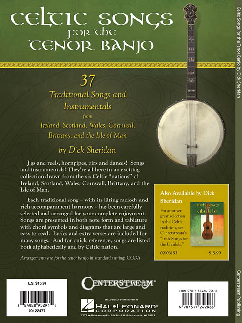 Jigs e reels, hornpipes, árias e danças! Canções e músicas instrumentais! Estão todas aqui em uma coleção extraída das seis "nações" Celta - Irlanda, Escócia, País de Gales, Cornualha, Bretanha e Ilha de Man. Cada canção tradicional - com a sua melodia e harmonia - cuidadosamente selecionada e arranjada para a sua diversão completa. As músicas são apresentadas em partituras e tablaturas com cifras e diagramas. As letras e versos extras são incluídos para muitas canções. E para uma consulta rápida, as músicas são listadas em ordem alfabética e por nação celta. Os arranjos são para o banjo tenor na afinação padrão: CGDA.