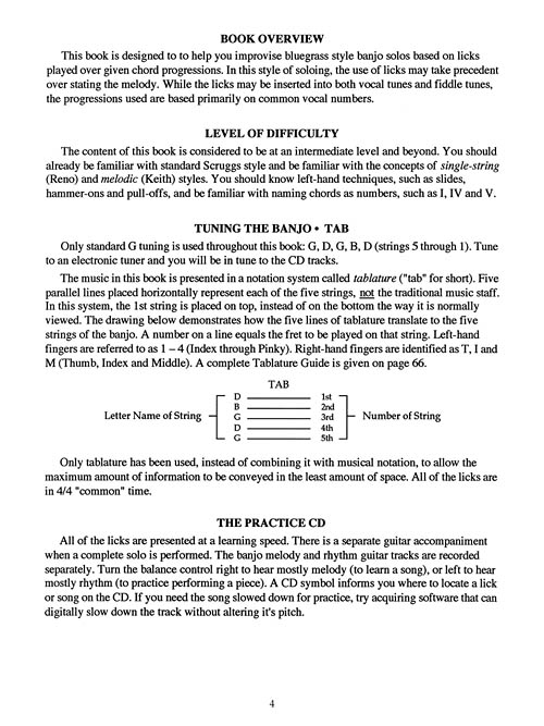 Know only 20 banjo solo licks? How about 50? 100? 200? If that's all, then you need this book, designed to help you improvise bluegrass style banjo solos. These 400 licks are played over standard chord progressions; the use of licks sometimes will take precedent over stating the melody. The progressions used are based primarily on common vocal numbers. Some of the licks included are: chromatic licks, embellishing a fiddle tune, high position licks, Reno style, pentatonic blues, boogie licks, swing phrasing, sequential licks, back-up licks and many more. Uses standard G tuning.