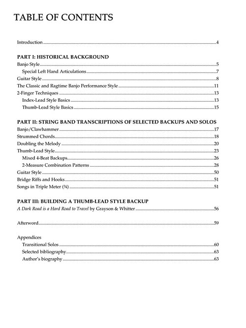 Old Time String Band Banjo Styles traz os estilos tradicionais de banjo de bandas de cordas rurais, tocados nas montanhas do sul do leste dos Estados Unidos, que eram usados para “segundas” canções vocais e melodias de violino durante a Era de Ouro da banda de cordas. Músicas, desde o início dos anos 1920 até o início dos anos 1930.