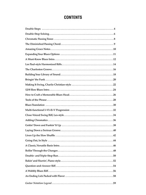 Master guitarist Duke Robillard gives you 30 ways to improve and expand your blues soloing and comping in this easy-to-use book/CD set. Designed for aspiring and experienced blues players alike, these lessons present unique concepts, merging elements of jazz with blues to take your playing to new heights.