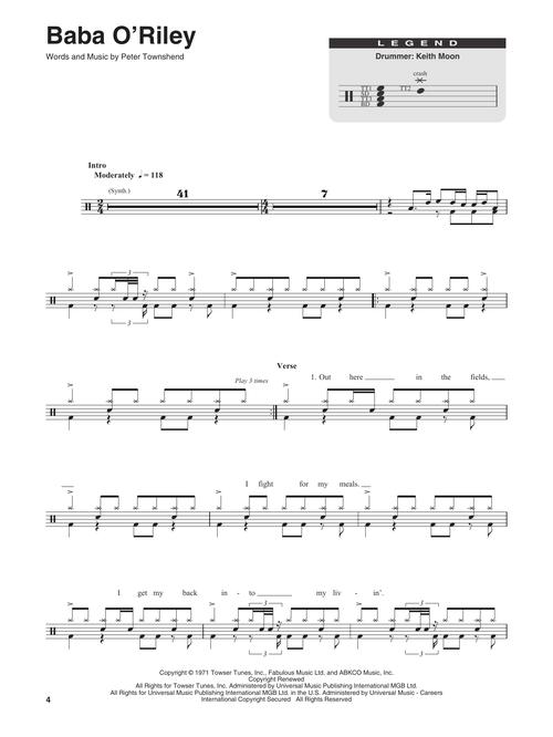 Você vai poder tocar as suas canções preferidas com a série Drum Play-Along. Basta seguir a partitura e ouvir o áudio disponível online, para sentir como soa o som da bateria e depois tocar junto utilizando a faixa de play back. As letras estão incluídas para referência. Incluindo: Baba O'Riley • Bargain • Behind Blue Eyes • The Kids Are Alright • Long Live Rock • Pinball Wizard • The Seeker • Won't Get Fooled Again.