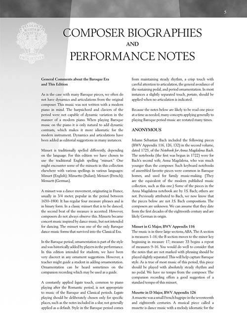 New collections of teaching pieces, with fingering, recorded performances, composer biographies, performance/practice commentary, and stylistically appropriate articulation suggestions for Baroque and Classical literature. The price of each volume includes online access to audio for download or streaming.