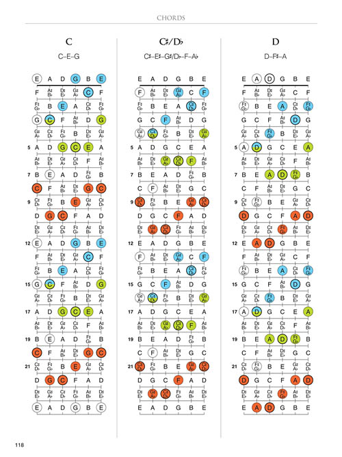 Mastering the guitar neck has always been a challenge, even for very experienced players. The full-color diagrams in Guitar Fretboard Atlas will help you quickly memorize scales and chords that may have previously seemed impossible to grasp. You'll be able to easily see and understand how scale and chord shapes are laid out and how they connect and overlap across the neck. This is a collection of roadmaps for the most important scales and chords. The material is presented in all 12 keys, using complete 24-fret neck diagrams with color-coded displays of the most common fingerings.