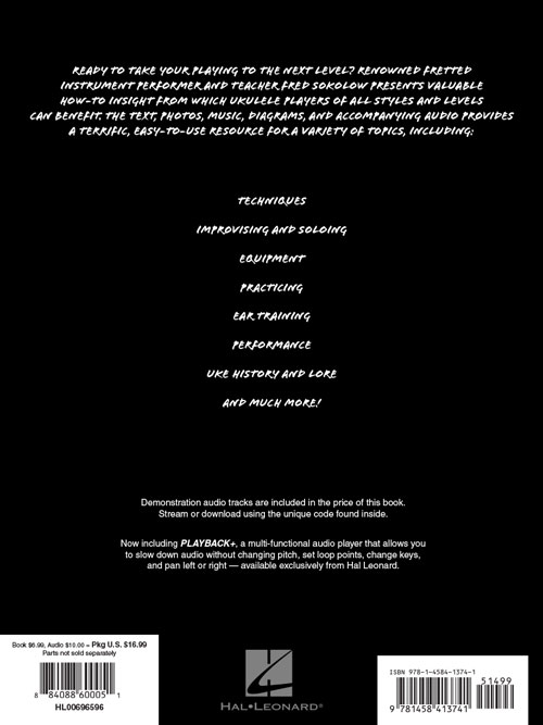 Ready to take your uke playing to the next level? Renowned fretted instrument performer and teacher Fred Sokolow presents valuable how-to insight from which ukulele players of all styles and levels can benefit. The text, photos, music, diagrams and accompanying audio provide a terrific, easy-to-use resource for a variety of topics, including: techniques, improvising and soloing, equipment, practicing, ear training, performance, uke history and lore, and much more!