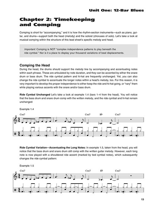 Jazz Drumming is designed to help today's rock, pop, and R&B drummer learn the jazz idiom quickly and efficiently. It is an inclusive and in-depth study of how to authentically perform alongside a rhythm section within jazz's popular styles and forms. This package includes a set of detailed charts, and each composition focuses on a particular musical form, drumset sound, solo concept, and comping approach. Genre relevant, drumset-based rudimental voicings, solo transcriptions, and simple brush patterns are also presented. After completing this study, the reader will be able to perform within a jazz ensemble – and sound like they belong there!