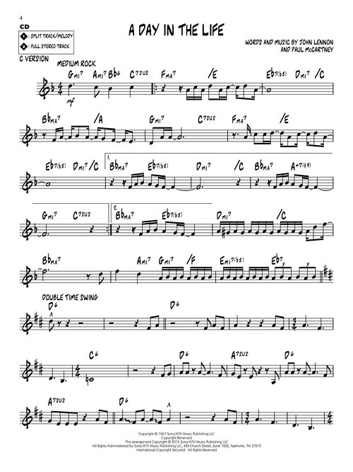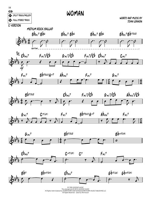 Esta série é uma excelente ferramenta de estudo para todos os músicos de Jazz. Todos os temas transcritos (melodia e acordes) para instrumentos em Bb, Eb, C e F. No CD cada tema tem duas gravações; uma faixa completa com a melodia e uma segunda faixa com o mesmo tema, porém sem a melodia, somente o play-back para que você possa tocar junto. Você ainda pode eliminar o Baixo ou o Piano usando o "balanço" do seu equipamento de som. "Chorus" adicionais para improvisação. A Day in the Life • Imagine • Instant Karma • Jealous Guy • Lucy in the Sky with Diamonds • (Just Like) Starting Over • Strawberry Fields Forever • Watching the Wheels • Woman • You've Got to Hide Your Love Away.