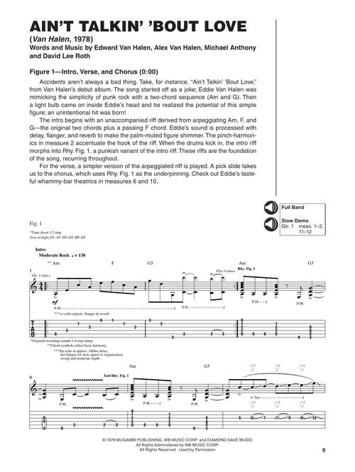 Aprenda o estilo e a técnica de Eddie Van Halen estudando 17 canções gravadas nos álbuns do Van Halen. Áudio Online disponível para download ou streaming. Ain't Talkin' 'Bout Love • And the Cradle Will Rock... • Beautiful Girls • Best of Both Worlds • Black and Blue • Cathedral • Dreams • Eruption • Finish What Ya Started • Hot for Teacher • Jamie's Cryin' • Jump • Mean Street • Panama • Right Now • Runnin' with the Devil • Unchained.