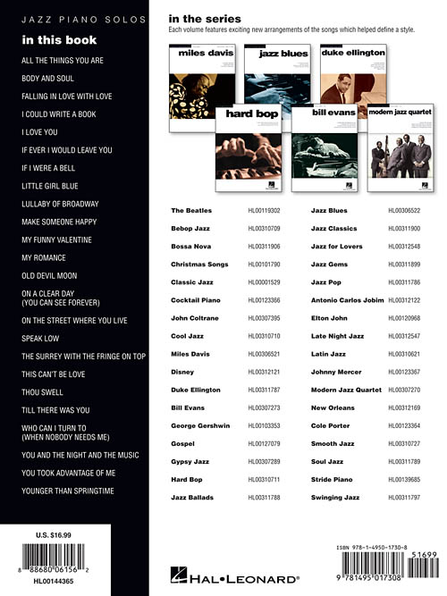Transcrições para piano solo. All the Things You Are • Body and Soul • I Could Write a Book • If I Were a Bell • Lullaby of Broadway • Make Someone Happy • My Funny Valentine • My Romance • On a Clear Day (You Can See Forever) • On the Street Where You Live • This Can't Be Love • Till There Was You • You and the Night and the Music • e outras!!!