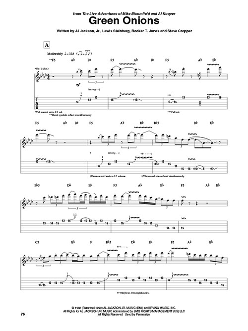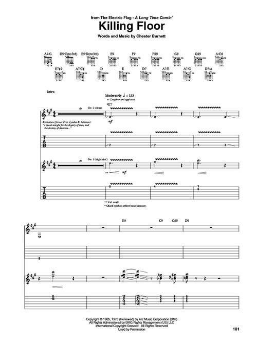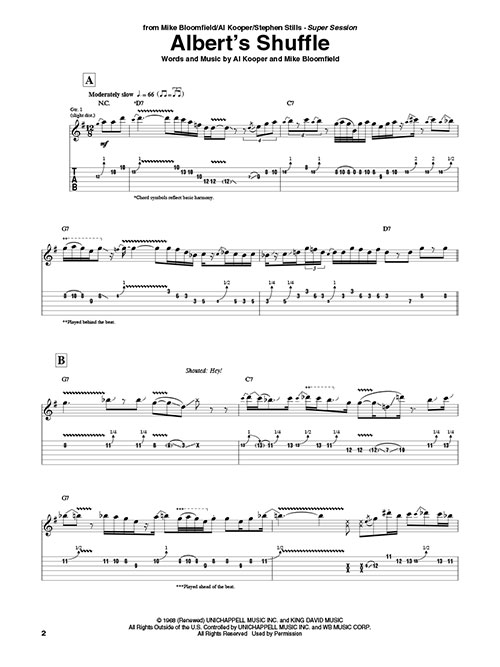 Transcrições para guitarra, na partitura e tablatura. Albert's Shuffle • Blues with a Feeling • Born in Chicago • City Girl • Further on up the Road • Going down Slow • Got My Mo Jo Working • Green Onions • Groovin' Is Easy • I Got a Mind to Give up Living • Killing Floor • Like a Rolling Stone • Lovin' Cup • Mary Ann • One Good Man • One Way Out • The Sky Is Crying • Stop • Sho 'Bout to Drive Me Wild • Walkin' Blues.