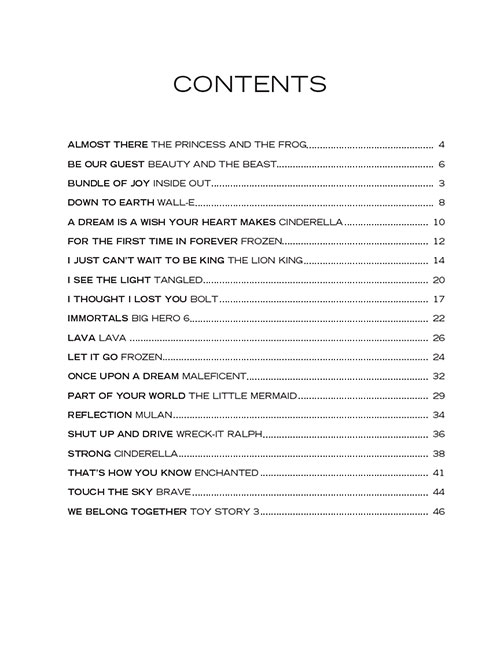 Arranjos super facilitados para piano de grandes sucessos da Disney. Be Our Guest • Bundle of Joy • A Dream Is a Wish Your Heart Makes • For the First Time in Forever • I Just Can't Wait to Be King • Immortals • Lava • Let It Go • Part of Your World • Reflection • Shut up and Drive • Strong • That's How You Know • We Belong Together • e outras!!!