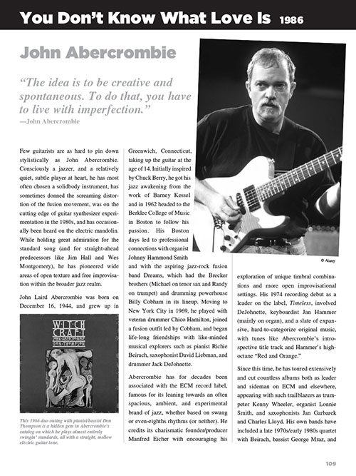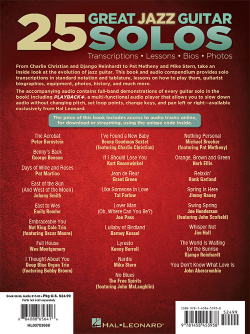 From Charlie Christian and Django Reinhardt to Wes Montgomery, Pat Metheny, Kenny Burrell and beyond, take an inside look at the genesis of jazz guitar. The book and audio compendium provides solo transcriptions in standard notation and tablature, lessons on how to play them, guitarist biographies, equipment, photos, history and much more. The accompanying audio contains full-band demonstrations of every guitar solo in the book!