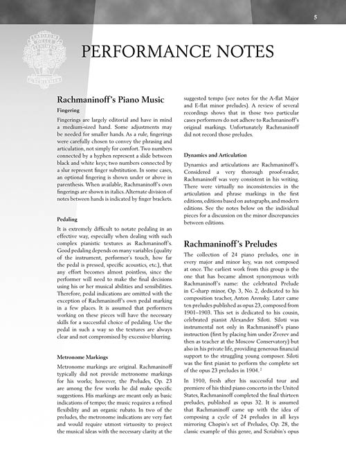 Dossin's new editions of the Rachmaninoff Preludes are combined together in this “book only” volume. The recordings may still be purchased on iTunes. Includes historical notes and performance suggestions. Schirmer Performance Editions are designed for piano students and their teachers as well as for professional pianists. These editions offer insightful interpretive suggestions, pertinent fingering, and historical and stylistic commentary. Prepared by experienced artists and master teachers, these publications provide an accurate, well-informed score resource for pianists.
