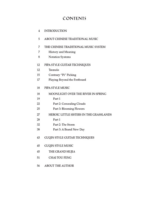 Arranjos de música chinesa para Violão; incluindo: Chai Tou Feng · The Grand Hujia · Heroic Little Sisters · Moonlight Over the River in Spring.