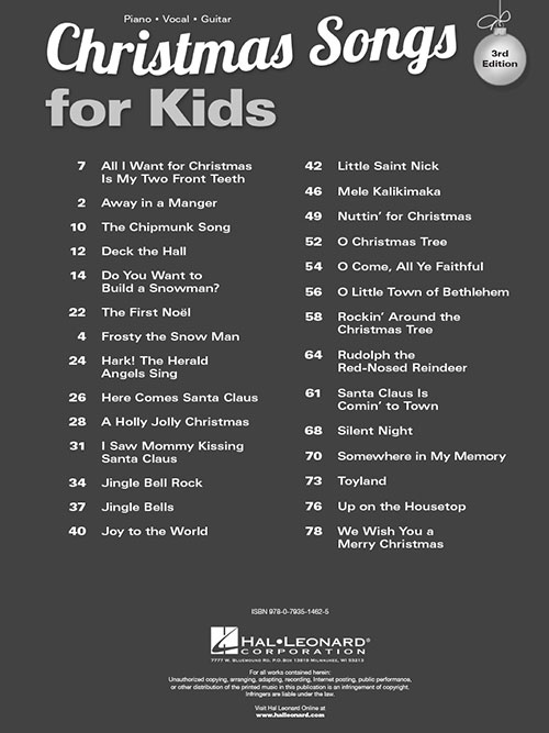 The 3rd edition of this popular piano/vocal/guitar Christmas collection for kids features 28 favorite songs of the season.