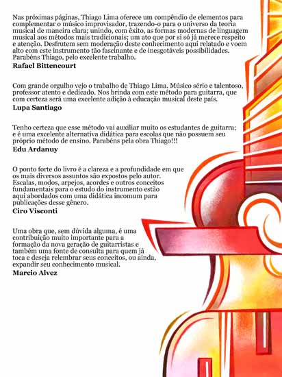 Este método constitui uma importante ferramenta para o desenvolvimento musical de alunos de diversos níveis de aprendizagem. Os tópicos incluídos no livro formam tanto a estrutura teórica/harmônica básica que é necessária para o enriquecimento musical dos improvisos, arranjos, acompanhamentos e análises de um instrumentista em formação, como a rotina diária dos exercícios de aperfeiçoamento da técnica e da mecânica de digitações, palhetadas, ligaduras, ornamentos e sincronização da ação das mãos.