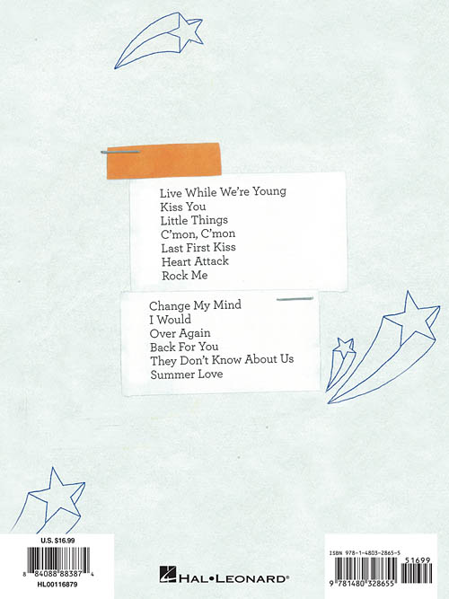 Transcrições para piano e acordes para violão. Live While We're Young • Back for You · Change My Mind · C'Mon C'Mon · Heart Attack · I Would · Kiss You · Last First Kiss · Little Things · Over Again · Rock Me · Summer Love · They Don't Know About Us.