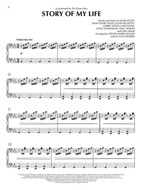 Toque junto com as faixas de apoio originais criadas e gravadas pelo Piano Guys! Cada livro inclui um código exclusivo que permite acessar as faixas de suporte on-line para download ou streaming. Story of My Life · Let It Go · Ants Marching/Ode to Joy · Father's Eyes · Kung Fu Piano: Cello Ascends · Summer Jam · Batman Evolution · Don't You Worry Child · Home · The Mission/How Great Thou Art · Because of You · Pictures at an Exhibition.