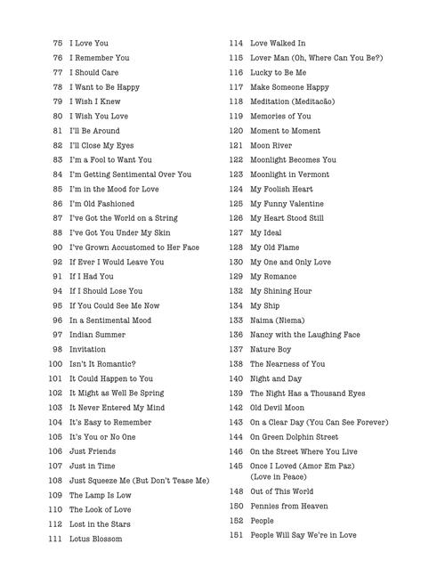 Querendo adicionar alguma cor e variedade ao seu próximo show? Confira esta nova edição do Real Book com harmonizações alternativas de 200 standards de jazz pelo renomado pianista de jazz David Hazeltine. O livro inclui uma introdução de Hazeltine, descrevendo e explicando as técnicas e as noções utilizadas ao longo do livro. All the Things You Are · Alone Together · Body and Soul · Days of Wine and Roses · Falling in Love with Love · Georgia on My Mind · Have You Met Miss Jones? · If I Should Lose You · In a Sentimental Mood · Just Friends · Moonlight in Vermont · My Funny Valentine · My One and Only Love · My Romance · The Nearness of You · On Green Dolphin Street · Satin Doll · The Shadow of Your Smile · Speak Low · Star Eyes · Stella by Starlight · Summertime · Tangerine · There Is No Greater Love · There Will Never Be Another You · The Very Thought of You · What a Wonderful World · When I Fall in Love · When Sunny Gets Blue · Yesterdays · e outras!!!