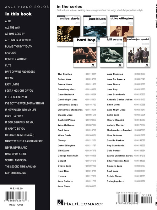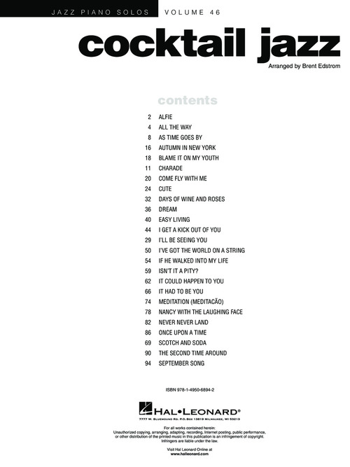 Arranjos para piano solo: Alfie · As Time Goes By · Come Fly with Me · Days of Wine and Roses · I Get a Kick Out of You · If He Walked into My Life · I'll Be Seeing You · It Could Happen to You · It Had to Be You · Nancy with the Laughing Face · Scotch and Soda · September Song · e outras!!!