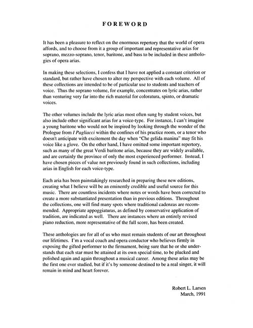 Purcell: When I am laid in earth (Dido and Aeneas) - Gluck: Che farò senza Euridice? (Orfeo ed Euridice) - Mozart: Non so più (Le Nozze di Figaro) · Voi, che sapete (Le Nozze di Figaro) · Smanie implacabili (Così fan tutte) - Rossini: Cruda sorte!...Già so per pratica (L'Italiana in Algeri) · Una voce poco fa (Il Barbiere di Siviglia) · Non più mesta (La Cenerentola) - Donizetti: Il segreto per esser felici (Orsini's Drinking Song) (Lucrezia Borgia) · O mio Fernando (La Favorita) - Meyerbeer: Nobles seigneurs, salut! (Les Huguenots) - Verdi: Stride la vampa! (Il Trovatore) - Gounod: Faites-lui mes aveux (Faust) · Que fais-tu, blanche tourterelle (Roméo et Juliette) - J. Strauss: Chacun à son got (Die Fledermaus) - Bizet: Habañera (Carmen) · Seguidilla (Carmen) · En vain, pour éviter les réponses amères (Carmen) - Ponchielli: Voce di donne (La Gioconda) - Saint-Saëns: Printemps qui commence (Samson et Dalila) · Amour! viens aider ma faiblesse! (Samson et Dalila) · Mon coeur s'ouvre à ta voix (Samson et Dalila) - Mascagni: Voi lo sapete (Cavalleria Rusticana) - Massenet: Va! laisse couler mes larmes (Werther) - Cilea: Acerba voluttà (Adriana Lecouvreur) - Thomson: We cannot retrace our steps (The Mother of Us All) - Menotti: Lullaby (The Consul) · Au, Michele, don't you know (The Saint of Bleecker Street) - Moore: Augusta! How can you turn away? (The Ballad of Baby Doe) - Barber: Must the Winter Come so Soon? (Vanessa).