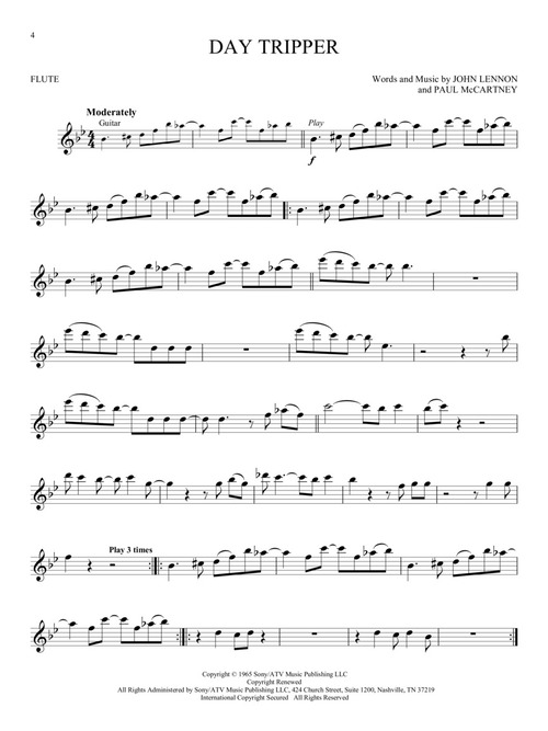 Transcrições para flauta e audio online para download ou streaming. All You Need Is Love • Blackbird • Day Tripper • Eleanor Rigby • Get Back • Here, There and Everywhere • Hey Jude • I Will • Let It Be • Lucy in the Sky with Diamonds • Ob-La-Di, Ob-La-Da • Penny Lane • Something • Ticket to Ride • Yesterday.
