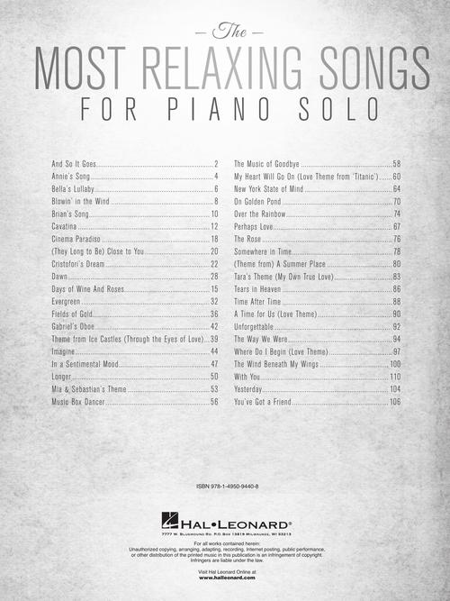 Transcrições para piano solo; incluindo: Annie's Song • Brian's Song • Cristofori's Dream • Evergreen • Fields of Gold • Gabriel's Oboe • Imagine • Music Box Dancer • Over the Rainbow • The Rose • A Time for Us (Love Theme) • The Way We Were • You've Got a Friend • e outras!!!