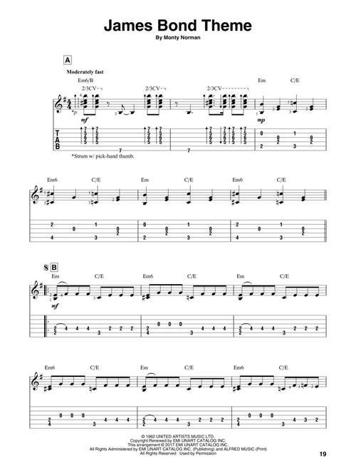15 famous pieces from blockbuster movies like Braveheart, Harry Potter, The Pink Panther, Pirates of the Caribbean, Star Wars, and more, carefully arranged for intermediate-level guitarists in standard notation and tablature. Each solo combines melody and harmony in one superb fingerpicking arrangement. This book also includes an easy introduction to basic fingerstyle guitar.
